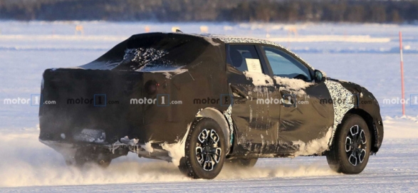 Первый пикап марки Hyundai засветился на заснеженной дороге